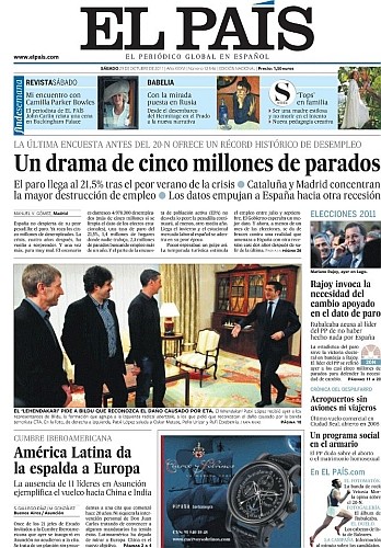 Zapatero é hoje, provavelmente, o político mais impopular de Espanha. Consciente desse facto, recusou recandidatar-se: para o seu lugar avançou o vice-primeiro-ministro Alfredo Pérez Rubalcaba, antigo lugar-tenente de Felipe González, ainda hoje idolatrado entre as bases socialistas como patriarca do Partido Socialista Operário Espanhol. González tem comparecido mais nos comícios desta campanha do que o desacreditado Zapatero. Mas nem isso impede que Rubalcaba tenha uma missão impossível: o país baixou três lugares na lista dos mais desenvolvidos do planeta, mergulhando no pior momento desde a queda do franquismo, em 1975. Com sucessivos aumentos de impostos, cortes salariais na administração pública, congelamento de pensões, um défice público de 6% e o maior número de desempregados de que há registo. "Um drama de cinco milhões sem emprego", titulava há dias o insuspeito El País, com notável precisão.