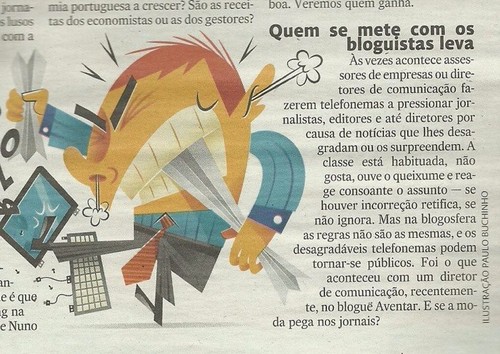 Imaginem um blogger que escreve um artigo crítico sobre um banco português. O seu blogue, pessoal, conta com poucos mas bons leitores. O director de comunicação (???) do banco em causa, fica irritado com o texto e resolve telefonar ao blogger, ameaçando-o. Como não fez o trabalho de casa, não sabia que o blogger em causa escrevia, igualmente, num outro blogue. Um blogue de forte audiência nacional (juntamente com o Educação no meu Umbigo e o Arrastão, lidera a blogosfera política nacional). Comprou uma guerra desnecessária e estúpida.