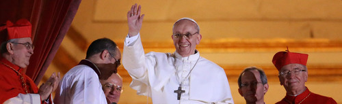 Também ele apareceu com ar despojado, fraterno, repassado de fragilidade humana. De braços caídos, sem pedir aplausos, com um sorriso tímido, parecia querer dizer aos mil e trezentos milhões de crentes que o reconhecem a partir de hoje como dirigente espiritual que está disposto a aceitar este imenso desafio que o destino lhe proporciona embora não se sinta verdadeiramente digno dele.