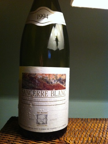 Se fosse gente, este vinho entraria para a faculdade no próximo semestre e estaria agora a inscrever-se no código para tirar a carta de condução. Bebido no ano décimo oitavo da sua existência, este Sancerre (oferta generosa do Senhor C. que o tinha esquecido na garrafeira), ontem por mim levado e consumido em casa do meu primo J., mais parecia um riesling alsaciano evoluído do que um sauvignon blanc. Apetrolado e glicérico, os anos de esquecimento transformaram-no num vinho decadente, de impressionante cor dourada, guloso e outonal.
